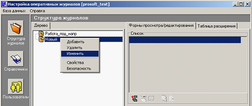 2) Прикрепить изображение плаката к каждому созданному оперативному журналу. Для этого ЛКМ выбрать журнал, а затем ПКМ активировать всплывающее меню и выбрать пункт меню «Изменить» (см. Рис. 9.13).