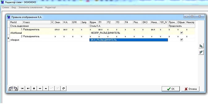 Функционал «Правила отображения КА» предназначен для гибкой настройки отображения состояния используемого на схеме коммутационного аппарата в соответствии с назначенным ему классом (класс может не использоваться, для этого в настройках правила выбирается класс- не важно) в структуре сервера "ОИК Диспетчер НТ".