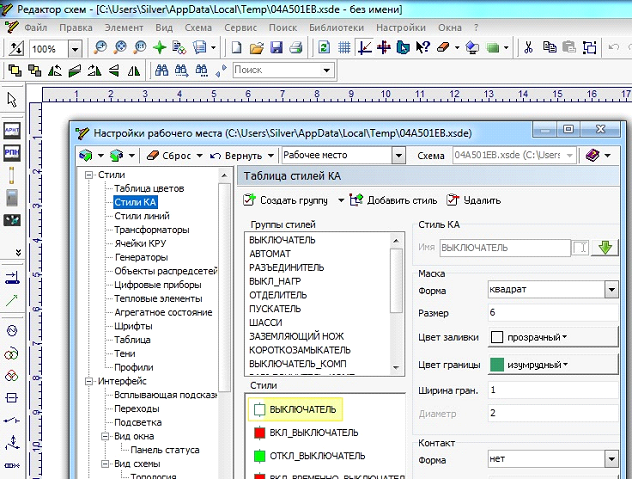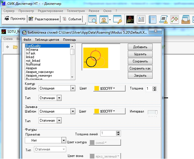 Стиль КА настраивается в ПО графического редактора Модус в режиме редактирования из под ПО клиента "ОИК Диспетчер НТ"(Настройки-Настройки рабочего места).