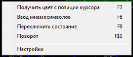 Вызов окна с таблицей мнемосимволов