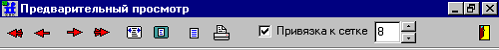 Вывод оперативной схемы на печать выполняется через окно предварительного просмотра. Панель управления окна предварительного просмотра при печати приведена на Рис. А.8. Масштаб печати определяется параметром «Разрешение (точек/дюйм)» в окне «Настройка».