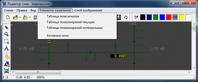 1) Щелчок ЛКМ на поле ввода оперативной схемы приводит к увеличению масштаба изображения, щелок ПКМ – уменьшает масштаб.