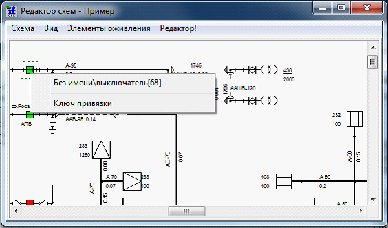 Привязка телеметрии или ‘оживление’ схемы означает, что графический символ объекта телесигнализации будет автоматически меняться при изменении значения телесигнала, а значение телеизмерения будет отображаться в заданном месте на схеме.