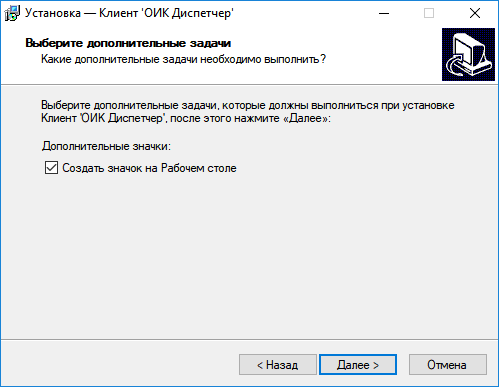 В следующем окне предоставляется возможность выбора создания ярлыка ПО клиента на рабочем столе.