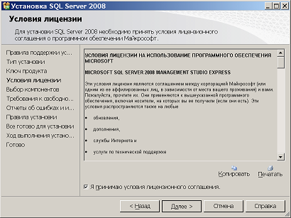 7) В окне «Условия лицензии» установить галочку «Я принимаю условия лицензионного соглашения» и нажать кнопку «Далее».