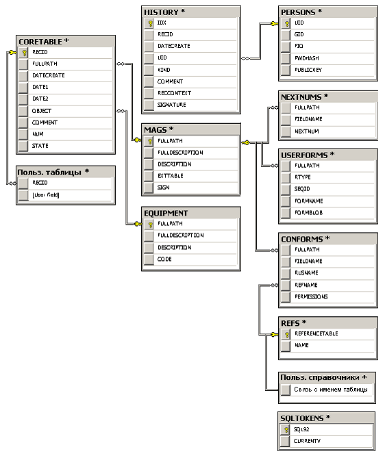 На рисунке представлена схема структуры базы данных, состоящей из минимального набора таблиц.