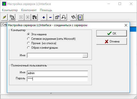 После установки ПО сервера «ОИК Диспетчер НТ» версии 2.3. необходимо запустить ПО контроля и управления «ОИК Диспетчер НТ», в появившемся окне «Соединиться с сервером» выбрать тип компьютера: