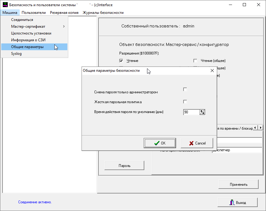 Общие настройки системы безопасности включают в себя: