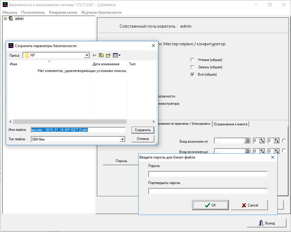 Данный тип копии можно восстановить на любой машине с установленным ПО сервера «ОИК Диспетчер НТ» версии 3.Х. Экспортная копия защищается паролем при восстановлении. Файлы экспортной копии имеют расширение sbk.