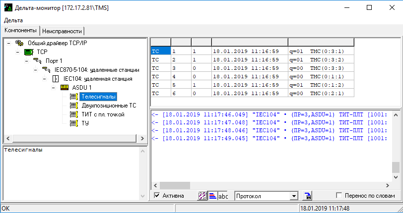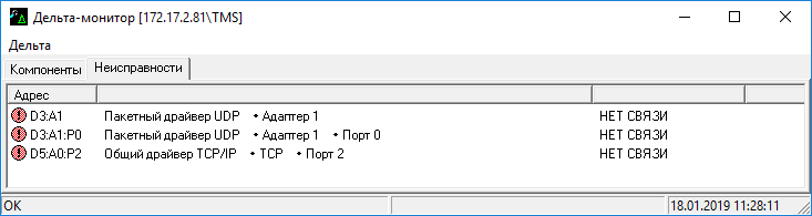 Окно главного меню программы «Дельта-монитор» открывается на закладке «Компоненты» приведено на Рис. 17.1.