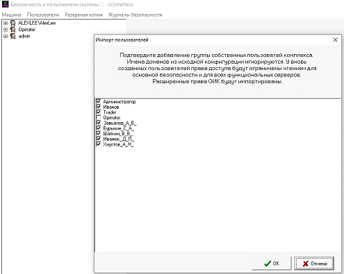 После переноса появится полный список пользователей, которым необходимо задать права и пароли для доступа к серверу.