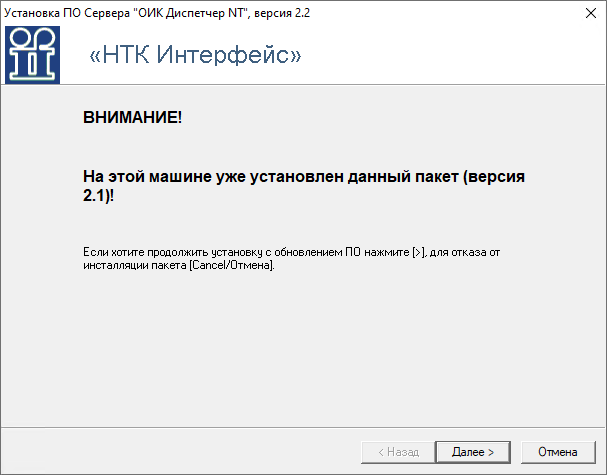 Перед началом процедуры обновления используемой версии ПО сервера "ОИК Диспетчер НТ" необходимо убедиться что используемый id-файл лицензии позволяет использовать версию ПО на которую планируется произвести обновление. Подробная процедура проверки id-файла описана в разделе 19.7