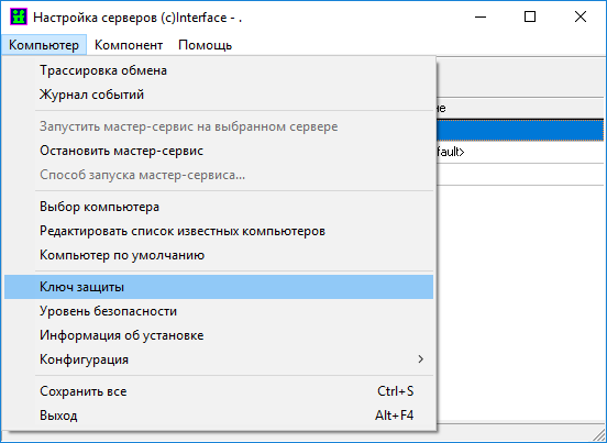 Проверить настройку ключа защиты ПО. Вновь открыть в «Настройке серверов» пункты меню «Компьютер» - «Ключ защиты». Убедиться что в поле «ID-файлы в системе» отображается добавленный ранее файл.