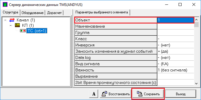 10.3.1 На закладке «Структура» сервера динамических данных TMS настроить структуру размещения принимаемых телепараметров (ТС, ТИТ, ТИИ) в памяти сервера. Подробное описание параметров настройки сервера динамических данных на закладке «Структура» приведено в разделе 14.1.