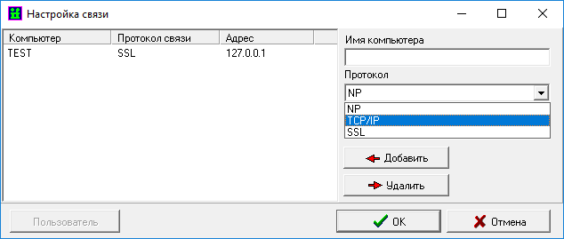 Выбор пункта меню «Редактировать список известных компьютеров» активирует окно, приведенное на Рис. 12.6. Примеры с описанием настроек для удаленного подключения к серверу приведены в Приложении В.