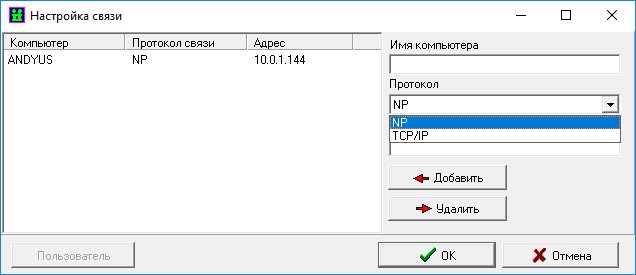 Имя компьютера выбирается из списка известных компьютеров