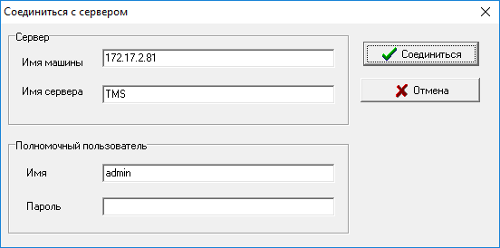 Открывает окно соединения с серверов, которое позволяет присоединиться к любому доступному TMS - серверу в сети.