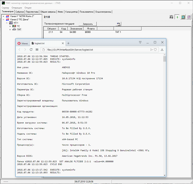 Результаты работы функции отображаются в TMS-мониторе и заданном в описании Log-файле. Для проверки правильности настроек необходимо убедиться в соответствии полученных данных с регистром, а так же отображение трассировки запроса. Результаты работы функции отображены на рисунке.