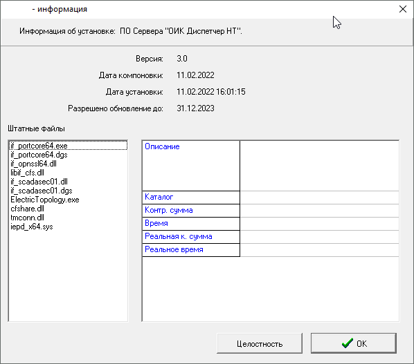 Информация об установке ПО сервер «ОИК Диспетчер НТ»