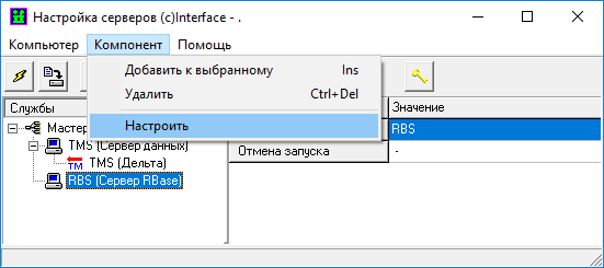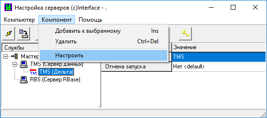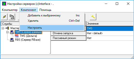Выбор пунктов меню «Компонент» -> «Настроить» для службы «Сервер статических данных» активирует окно настройки сервера статических данных.