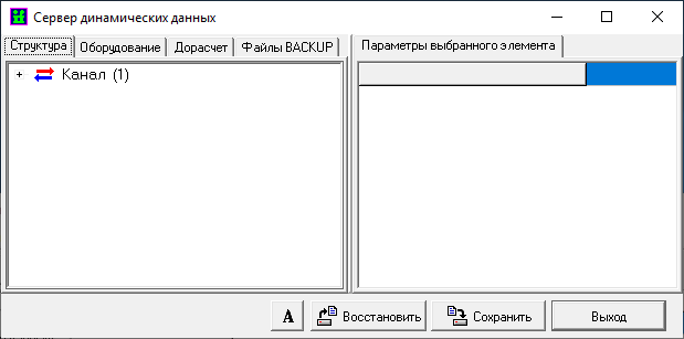 Выбор пунктов меню «Компонент» -> «Настроить» для службы «Сервер динамических данных» активирует окно настройки сервера динамических данных на закладке «Структура».