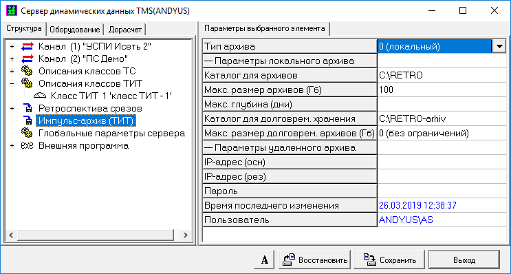 - адрес компьютера, на котором ведется удаленный импульс-архив ТИТ, принимаемых от основного сервера «ОИК Диспетчер НТ»;