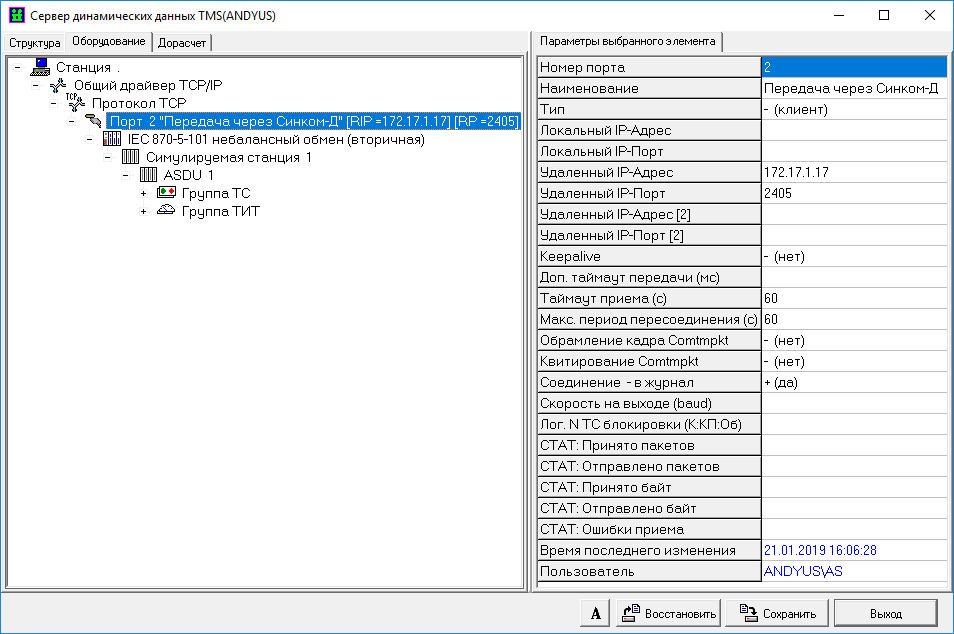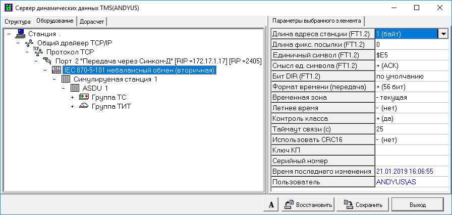 Настройка сервера TMS (передача в протоколе МЭК 870-5-101, см. раздел .18.1.1)