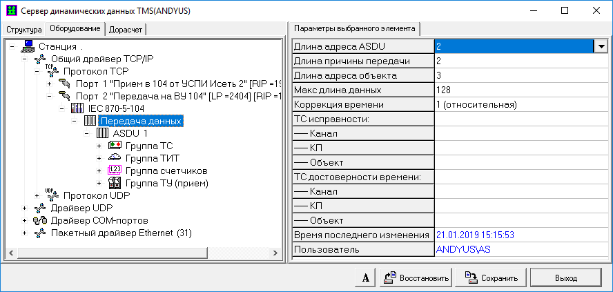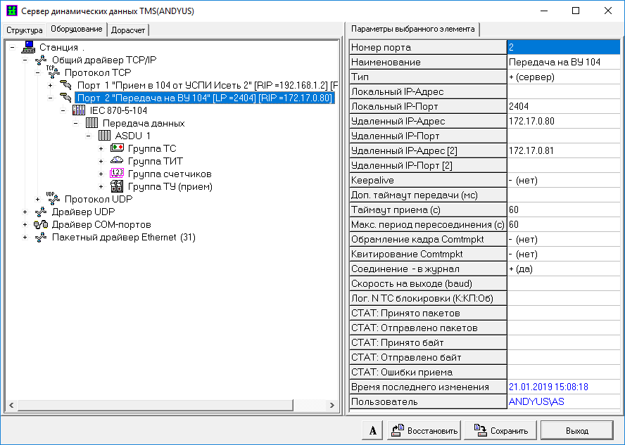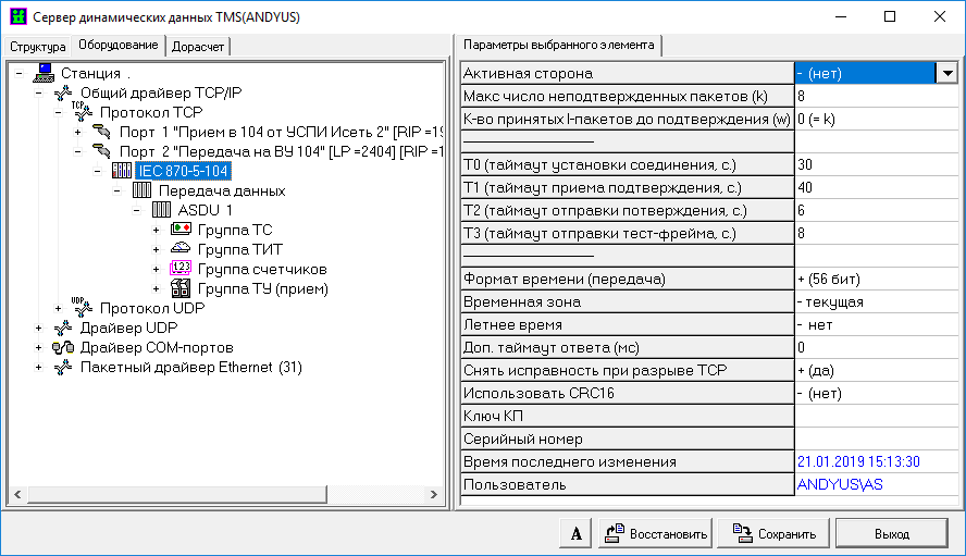 Настройка сервера TMS (передача в протоколе МЭК 870-5-104)