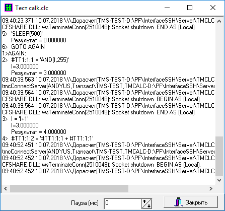 Для отладки программ в режиме «Тест» рекомендуется задать паузу, не равную нулю (пауза между выполнением двух соседних операторов языка дорасчета).