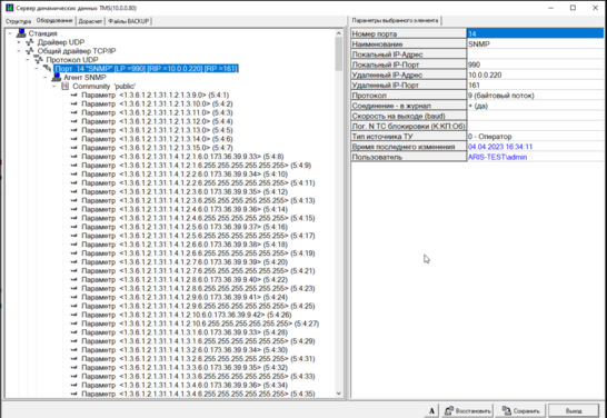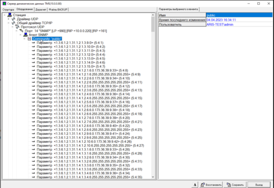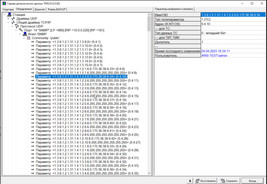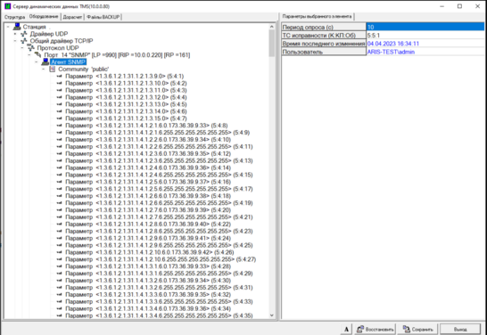 Настройка происходит на уровне TMS сервера во вкладке «Оборудование» с помощью компонента агент SNMP
