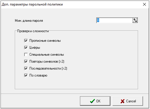 3. Парольная политика ПО сервера «ОИК Диспетчер НТ» версии 3.Х. выделяется два уровня парольной политики: