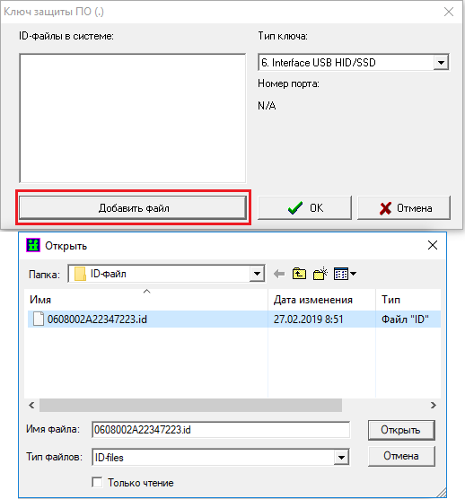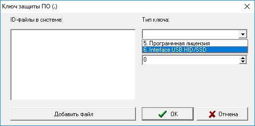 6. Interface USB HID/SSD - данный тип ключа, используется при наличии аппаратного ключа защиты, который подключается в USB - порт компьютера. Номер id-файла таких лицензий должен начинаться с цифр 06...id. На аппаратном ключе должен быть отображен номер из 16 символов, полностью совпадающий с именем id-файла.