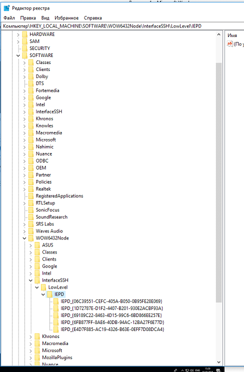 Компьютер\HKEY_LOCAL_MACHINE\SOFTWARE\WOW6432Node\InterfaceSSH\LowLevel\IEPD