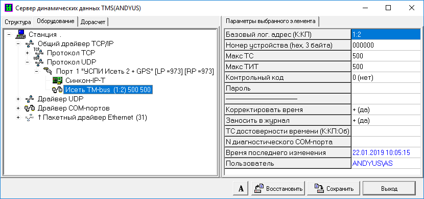 Параметры настройки компонента ‘Исеть TM-BUS’:
