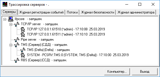 Выбор пункта меню «Трассировка обмена» активирует окно трассировки серверов на закладке «Серверы».
