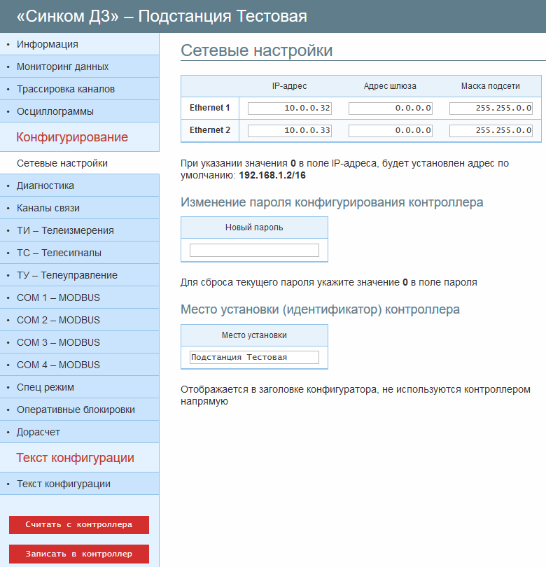 4.1.3. Конфигурирование сетевых настроек контроллера