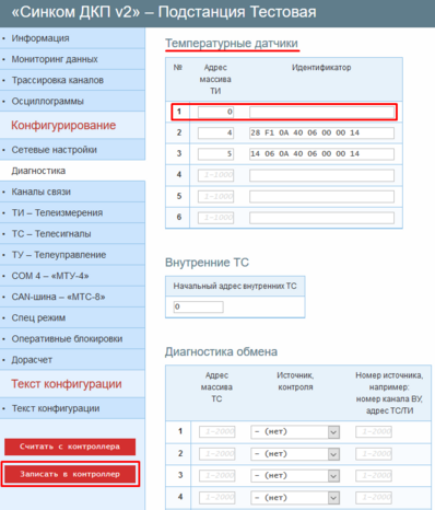 Внимание: если к контроллеру подключен только один датчик температуры, то заполнять параметр «Идентификатор» не обязательно.