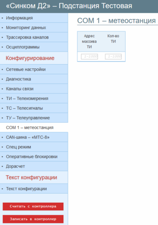 Контроллеры серии «Синком-Д» поддерживают считывание значений ТИ с метеостанции WXT520 по интерфейсу RS485.