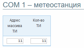 Пример: Контроллер будет получать от метеостанции 11 ТИ и записывать их в свой массив ТИ начиная с адреса 11.