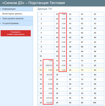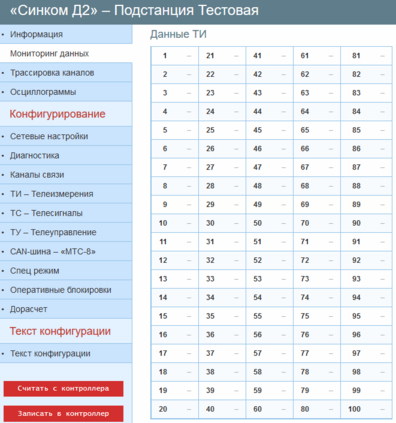 Так как контроллер «Синком-Д2» не принимает данные из шины «Исеть TM-BUS» ТИ получаемые контроллером «Синком-Д3» в его массиве ТИ не отражаются.