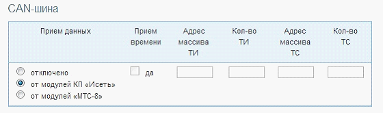 Для настройки CAN-шины нужно установить прием данных «от модулей КП «Исеть».