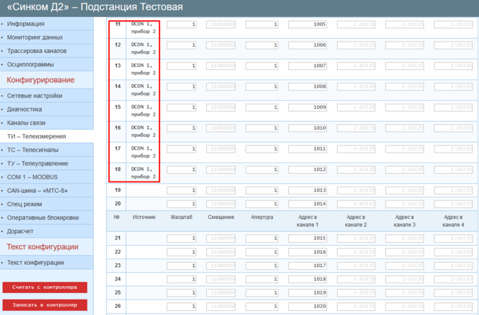 После настройки, ТС и ТИ каждого из запросов (14 ТС и 8 ТИ на запрос) будут отражены во вкладках «ТС – Телесигналы» и «ТИ – Телеизмерения» в соответствии со значениями параметров «Начальный адрес в массиве ТС/ТИ».