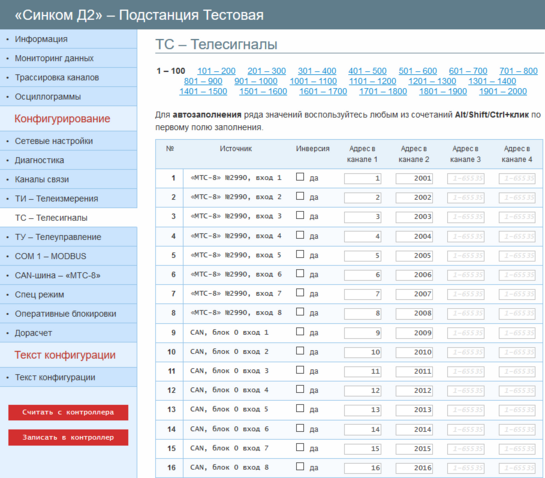Внимание: адреса в канале не должны пересекаться с адресами ТУ и ТИ.