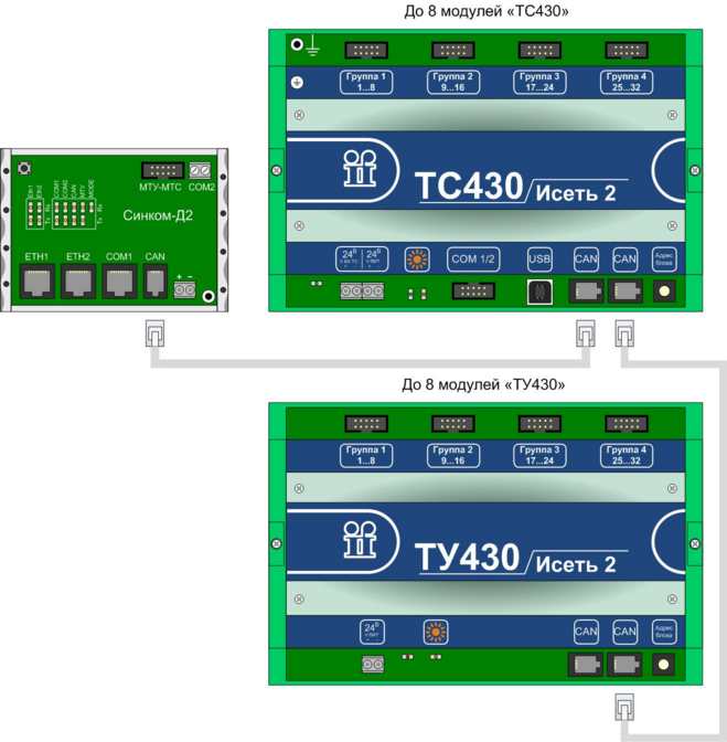 3.5.2. Подключение модулей к контроллеру «Синком-Д2»