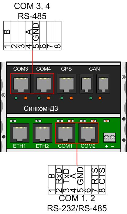3.3.2. Подключение RS-232/RS-485 к контроллеру «Синком-Д3»