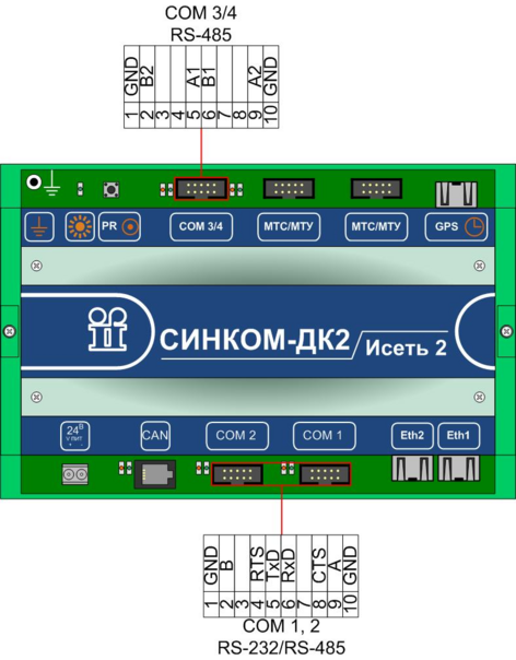 3.3.1. Подключение RS-232/RS-485 к контроллеру «Синком-ДК2»