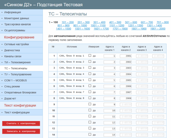 Внимание: адреса в канале не должны пересекаться с адресами ТУ и ТИ.