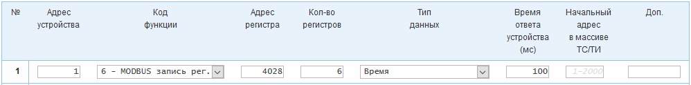 Запись с типом данных «Время» возможна только для устройств «ИКИ-50». Посылка записывает в устройство время, установленное в контроллере.