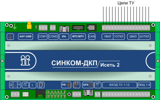 Внешние цепи ТУ подключаются непосредственно к контроллерам «Синком-ДКП» и «Синком-ДКП»/13,8. Для подключения цепей ТС используются винтовые клеммы для проводов сечением до 2,5 мм