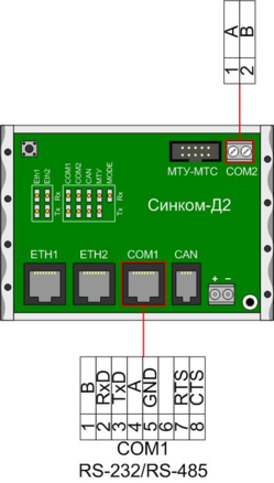 Объединенный порт «МТС-МТУ» позволяет обеспечить подключение до 10 модулей «МТС-8» (до 20 модулей с использованием модуля «РШ-1») для ввода дискретных сигналов ТС и до 16 модулей телеуправления «МТУ-4» (до 25 модулей «МТУ-4» v.4 и выше с использованием модуля «РШ-1»).